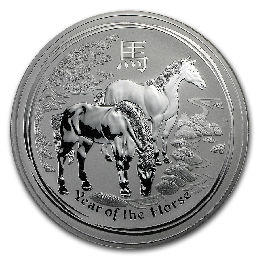 Tato kilogramová emise z druhé lunární série mincovny The Perth Mint oslavuje rok koně, který je tradičně spojován s vitalitou, nezávislostí a dynamikou. Na reverzní straně jsou dva koně v dynamické kompozici s nápisem "Year of the Horse", čínským znakem pro koně a značkou mincovny Perth Mint "P". Averz nese podobiznu královny Alžběty II. spolu s legendou "ELIZABETH II AUSTRALIA" a specifikací "1 kg 999 SILVER 2014 50 DOLLARS." Tato kilogramová investiční mince, ražená v kvalitě Brilliant Uncirculated, o průměru 100,6 mm a vydaná jako australské zákonné platidlo, kombinuje značný obsah stříbra s výraznou uměleckou tradicí Lunar II.