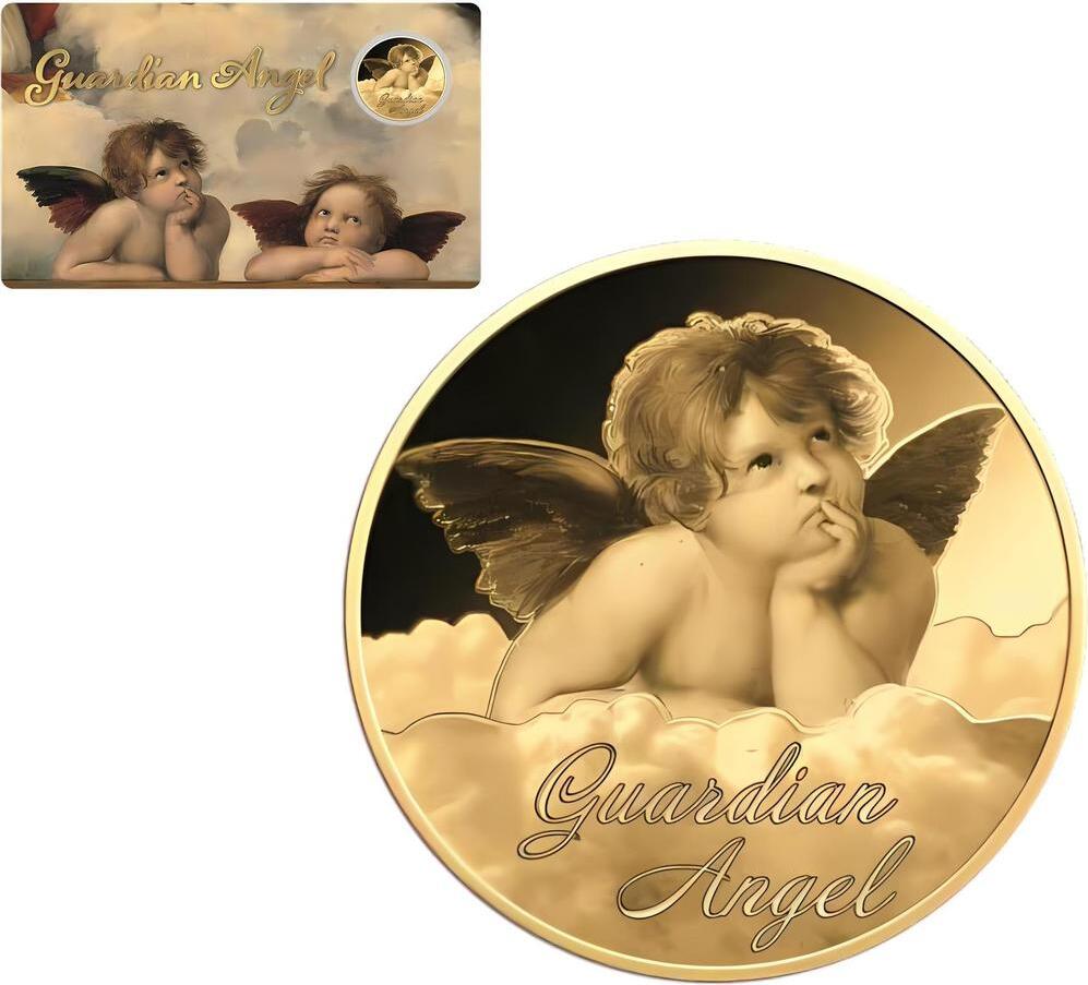 Tato symbolická zlatá mince je věnována andělu strážnému, ochránci, který nás chrání ve dne v noci. Na reverzní straně se nachází něžný obrázek anděla sedícího na měkkém obláčku a v horní části nápis "Anděl strážný". Mince je dodávána v blistru s certifikátem pravosti. Je vyražena z nejkvalitnějšího zlata a její náklad je celosvětově omezen na 50 000 kusů.