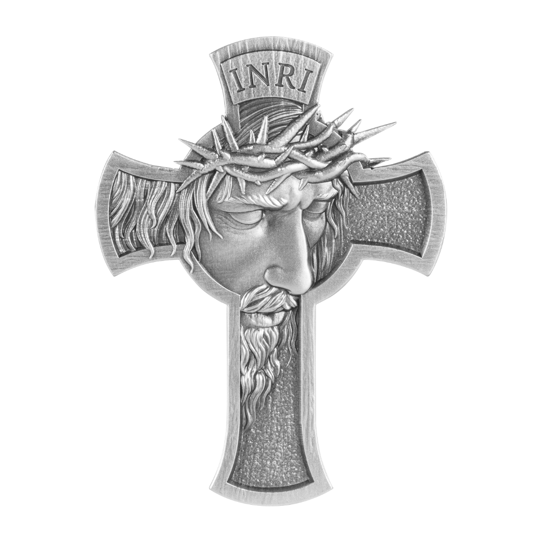 Tato jedinečná stříbrná mince o hmotnosti jedné unce má tvar kříže a připomíná ústřední symbol křesťanské víry, ukřižování Ježíše Krista. Reverzní strana zobrazuje Spasitelovu tvář v trnové koruně s ohromujícími detaily, které odrážejí jeho utrpení, soucit a duchovní sílu. Mince má starožitnou povrchovou úpravu a individuální sériové číslo, které podtrhuje její exkluzivitu. Vydána v limitované edici pouhých 500 kusů pro celý svět. Dodává se v tematickém pouzdře s certifikátem pravosti.
