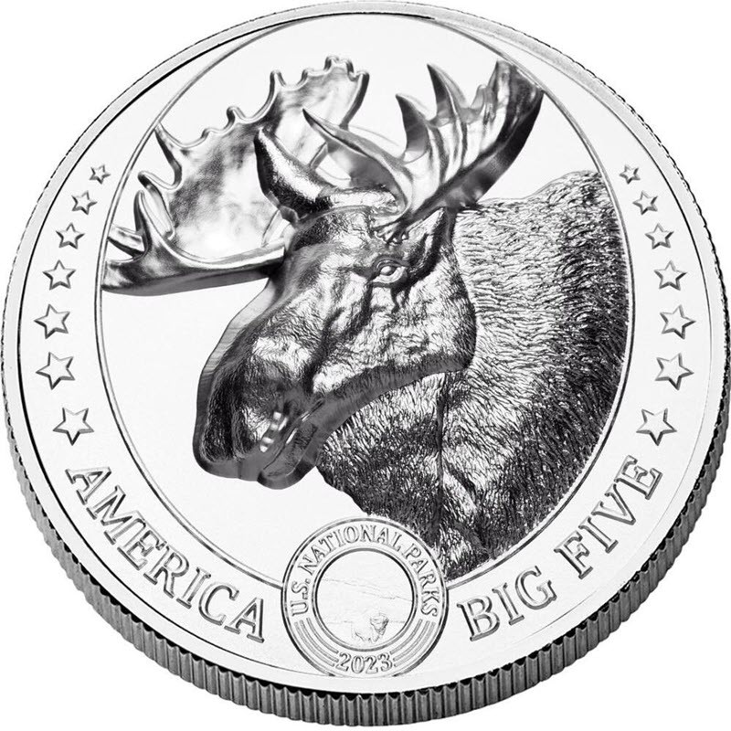 Sběratelská stříbrná mince Fiji America Big Five Moose 2023 1 unce ryzího stříbra 0,999