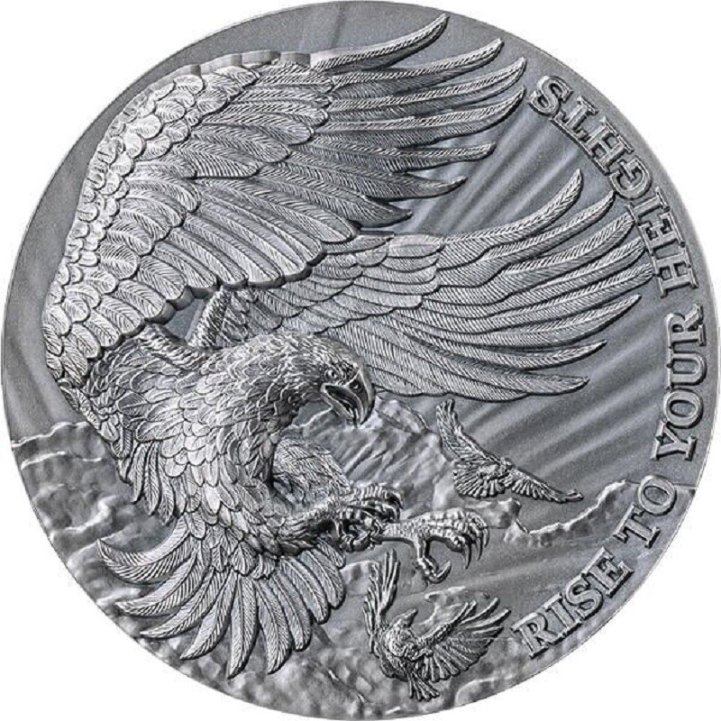 Tato elegantní stříbrná mince o hmotnosti 2 unce je součástí série "Citáty ze života" a je věnována majestátnímu orlu, symbolu síly a nadřazenosti. Na reverzní straně je vyobrazen orel vznášející se nad havranem, který představuje vítězství ducha a vnitřní statečnost. Mince se vyznačuje antickou povrchovou úpravou a vysokým reliéfem, který zdůrazňuje uměleckou hloubku návrhu. Je dodávána v elegantním pouzdře s certifikátem pravosti a je limitována pouze 500 kusy na celém světě.