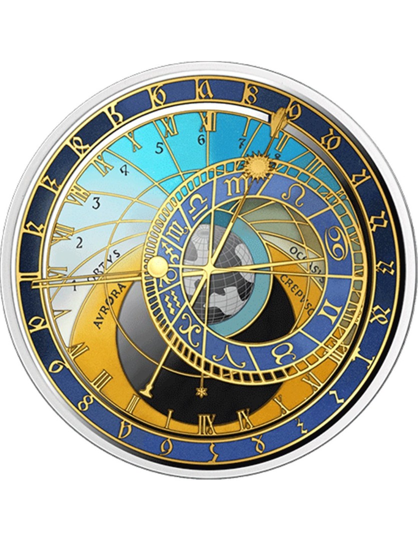 Tato elegantní stříbrná mince z Malty uvádí novou sérii Town Hall Clocks a je věnována světoznámému Pražskému orloji. Mince je vyražena v kvalitě Proof s rafinovaným selektivním zbarvením a na její hraně je rovněž individuálně vyraženo sériové číslo. Jádrem designu je kalendářní ciferník Orloje, vytvořený českým výtvarníkem Josefem Mánesem, symbolizující koloběh života a střídání ročních období. Emise je prezentována v originálním pouzdře a doplněna certifikátem pravosti. Náklad je přísně omezen na pouhých 700 kusů.