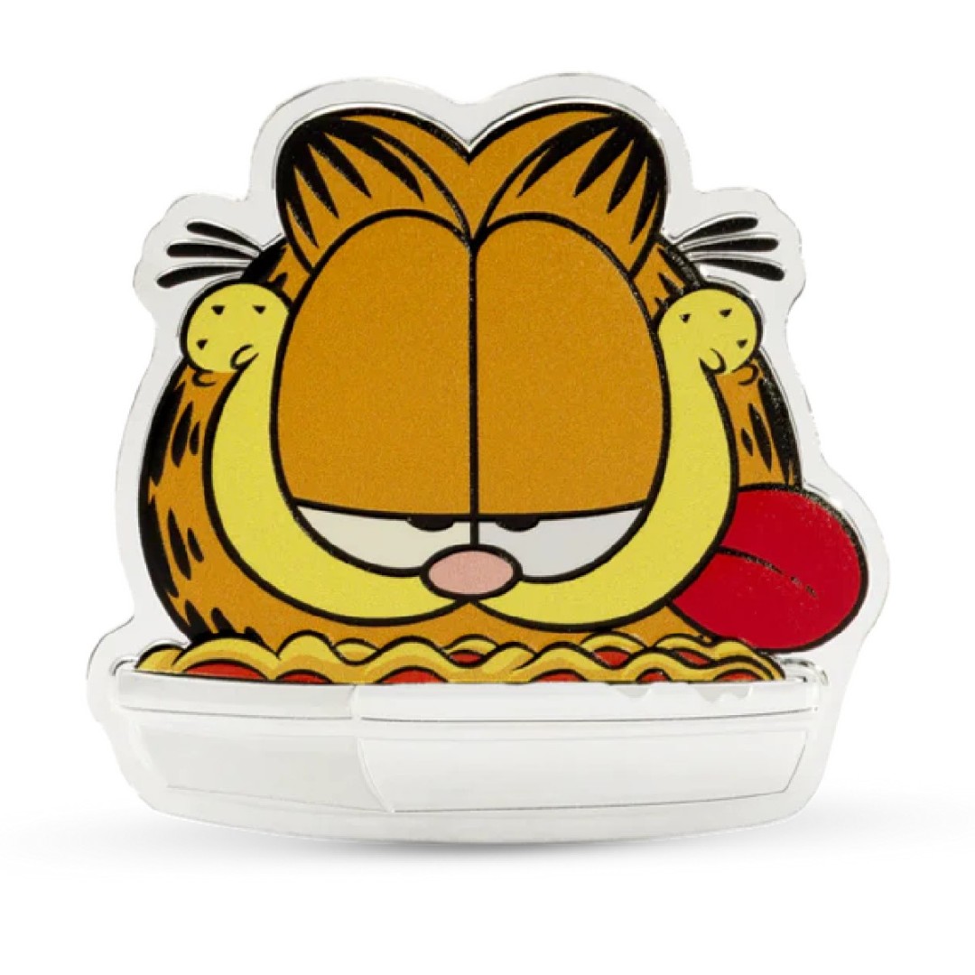 Tato zářivá sběratelská mince je věnována ikonickému kocourovi Garfieldovi - a samozřejmě jeho oblíbenému pokrmu. Je vydána k Národnímu dni lasagní a zobrazuje Garfielda v jeho charakteristickém stylu - s přimhouřenýma očima a vyplazeným jazykem - jak si pochutnává na tácu lasagní. Mince je vyrobena z 1 unce ryzího stříbra o ryzosti 0,999, má tvarovanou a barevnou povrchovou úpravu a je oficiálně licencována společností Nickelodeon. Jedná se o druhou emisi v sérii stříbrných mincí s motivem Garfielda, která je celosvětově vydána v limitovaném nákladu pouhých 1 000 kusů. Dodává se v barevném tematickém balení s výlohou.