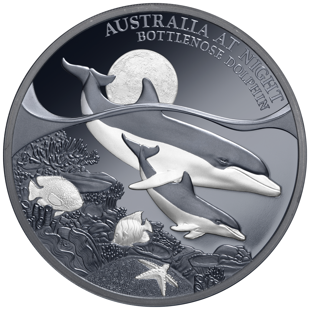 Tato nádherná stříbrná mince o hmotnosti 1 unce je součástí série Austrálie v noci a je věnována jednomu z nejznámějších mořských savců, delfínovi skákavému. Mince je vyražena v kvalitě Black Proof a vyznačuje se expresivním designem a výrazným kontrastem mezi leštěným stříbrem a sytě černým pozadím. Delfín skákavý, známý svou vysokou přizpůsobivostí a nočním loveckým chováním, dokonale odráží koncept série. Mince je prezentována v originálním pouzdře a je k ní přiložen certifikát pravosti. Náklad je celosvětově omezen na 1 000 kusů.